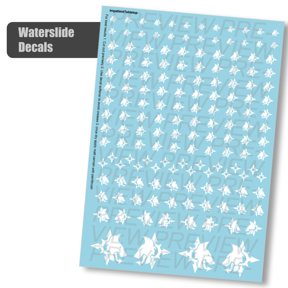 Elevate your miniature wargaming with waterslide decals—also known as transfers—designed specifically for modelers and perfect for miniature and wargaming models.