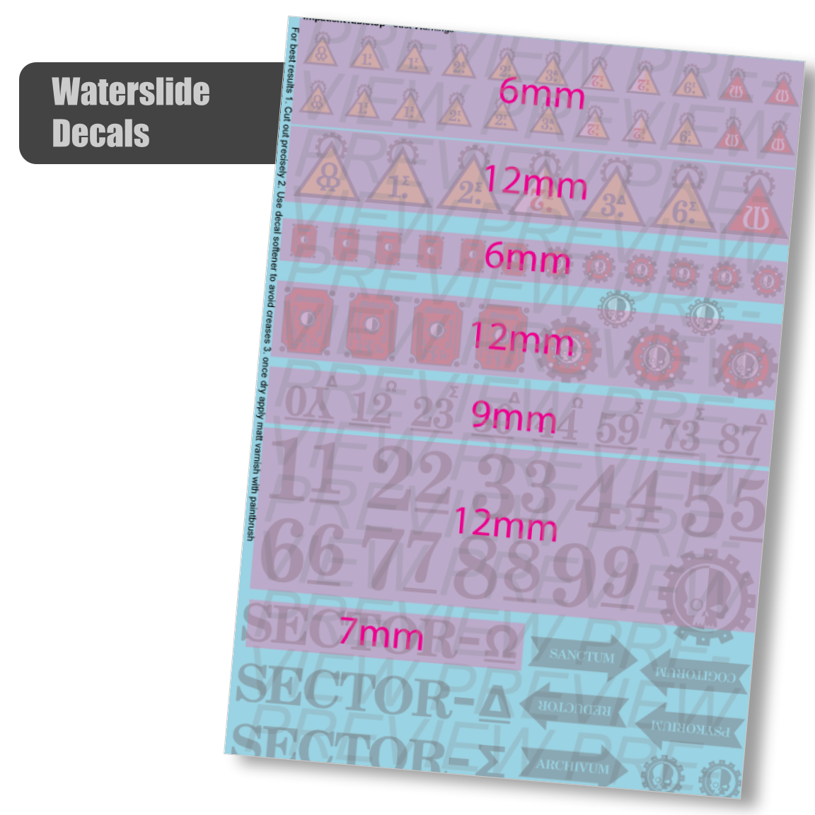 - Elevate your miniature wargaming with waterslide decals—also known as transfers—designed specifically for modelers and perfect for miniature and wargaming models.
