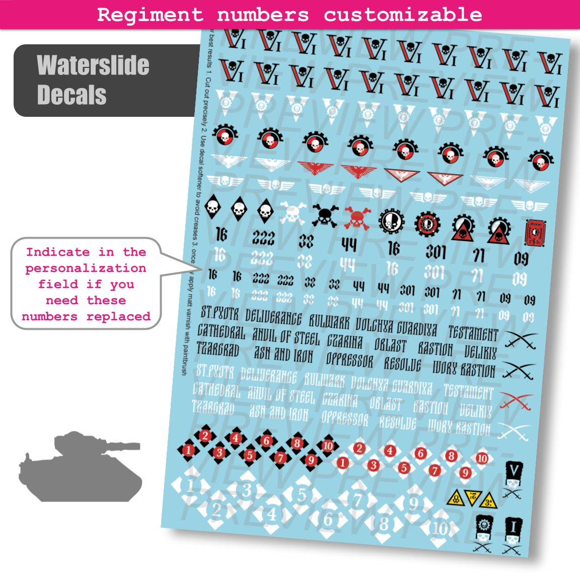 - Elevate your miniature wargaming with waterslide decals—also known as transfers—designed specifically for modelers and perfect for miniature and wargaming models.