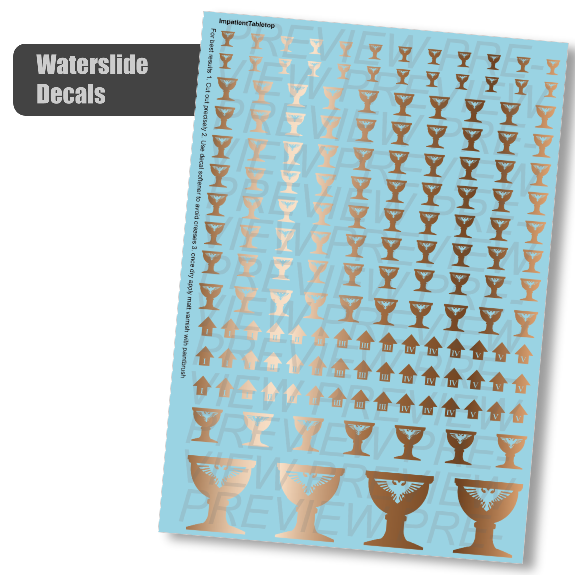 Elevate your miniature wargaming with waterslide decals—also known as transfers—designed specifically for modelers and perfect for miniature and wargaming models.