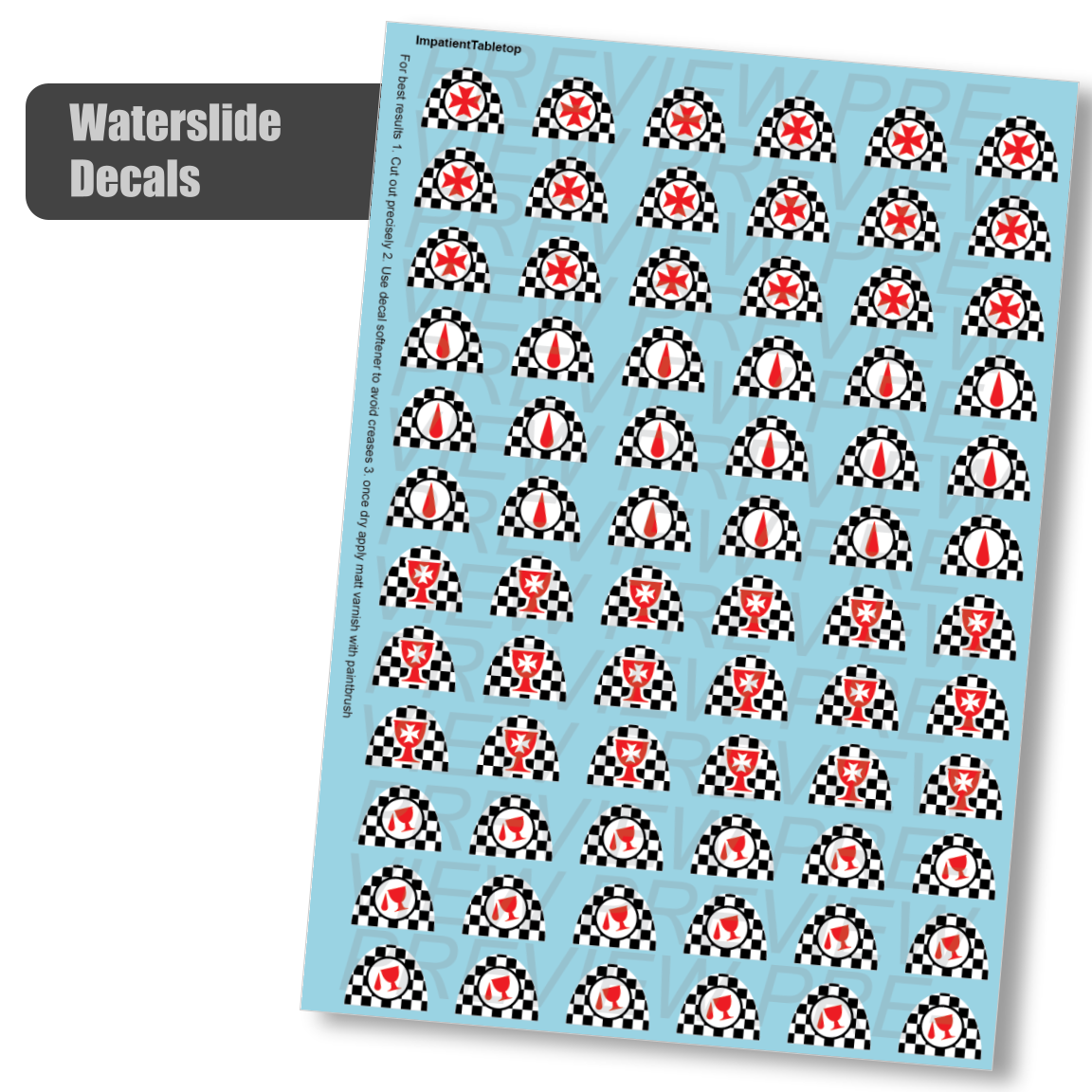 Elevate your miniature wargaming with waterslide decals—also known as transfers—designed specifically for modelers and perfect for miniature and wargaming models.