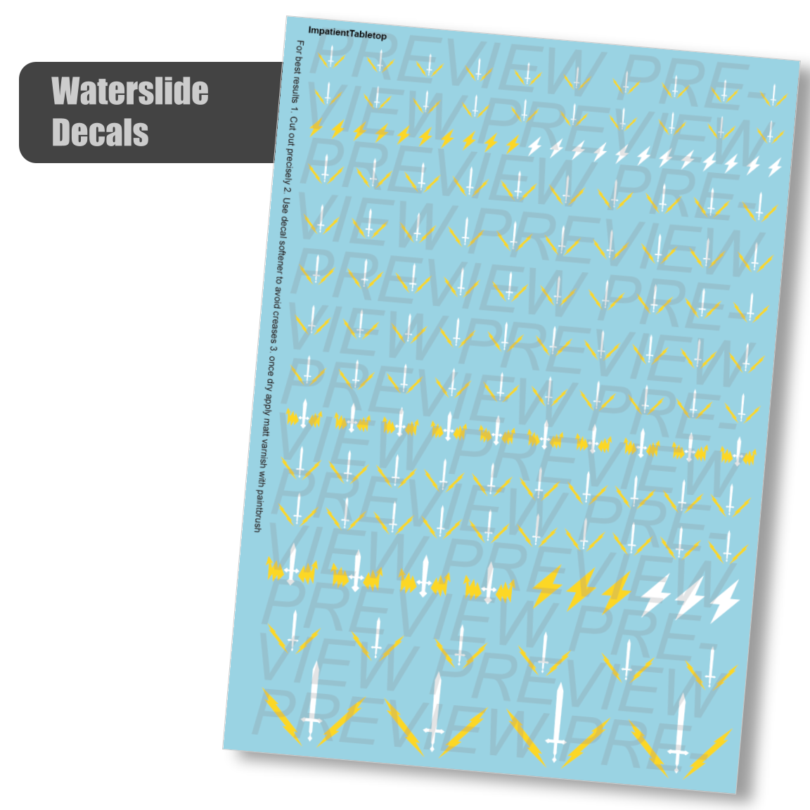 Elevate your miniature wargaming with waterslide decals—also known as transfers—designed specifically for modelers and perfect for miniature and wargaming models.
