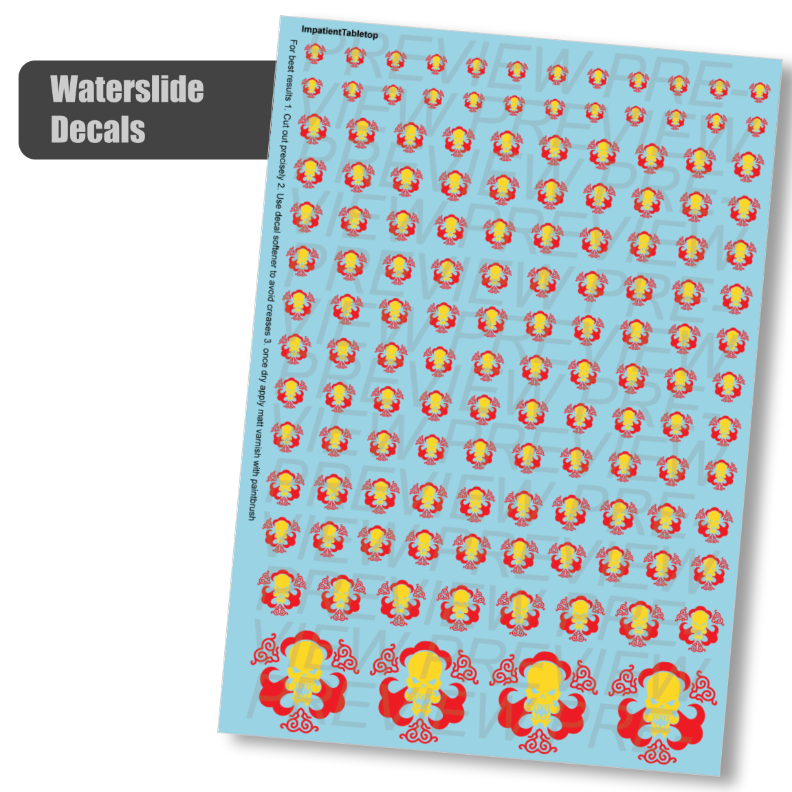 Elevate your miniature wargaming with waterslide decals—also known as transfers—designed specifically for modelers and perfect for miniature and wargaming models.