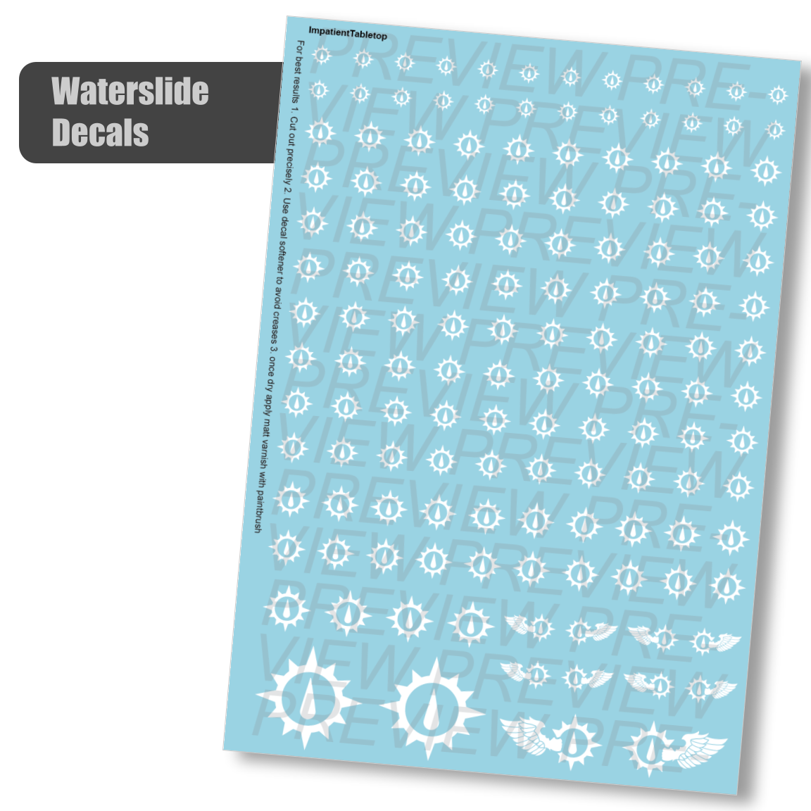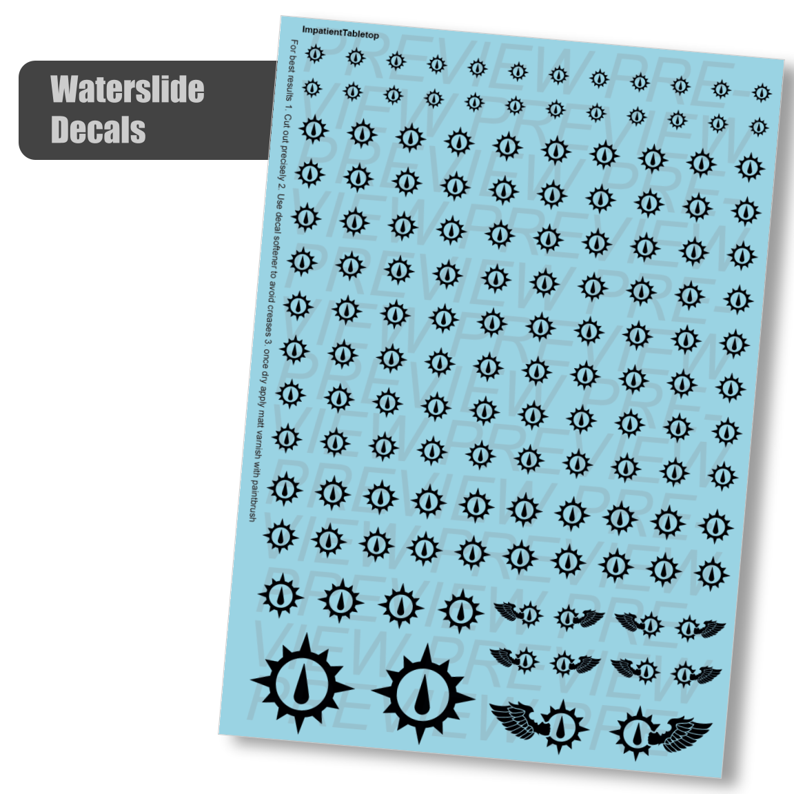 Elevate your miniature wargaming with waterslide decals—also known as transfers—designed specifically for modelers and perfect for miniature and wargaming models.