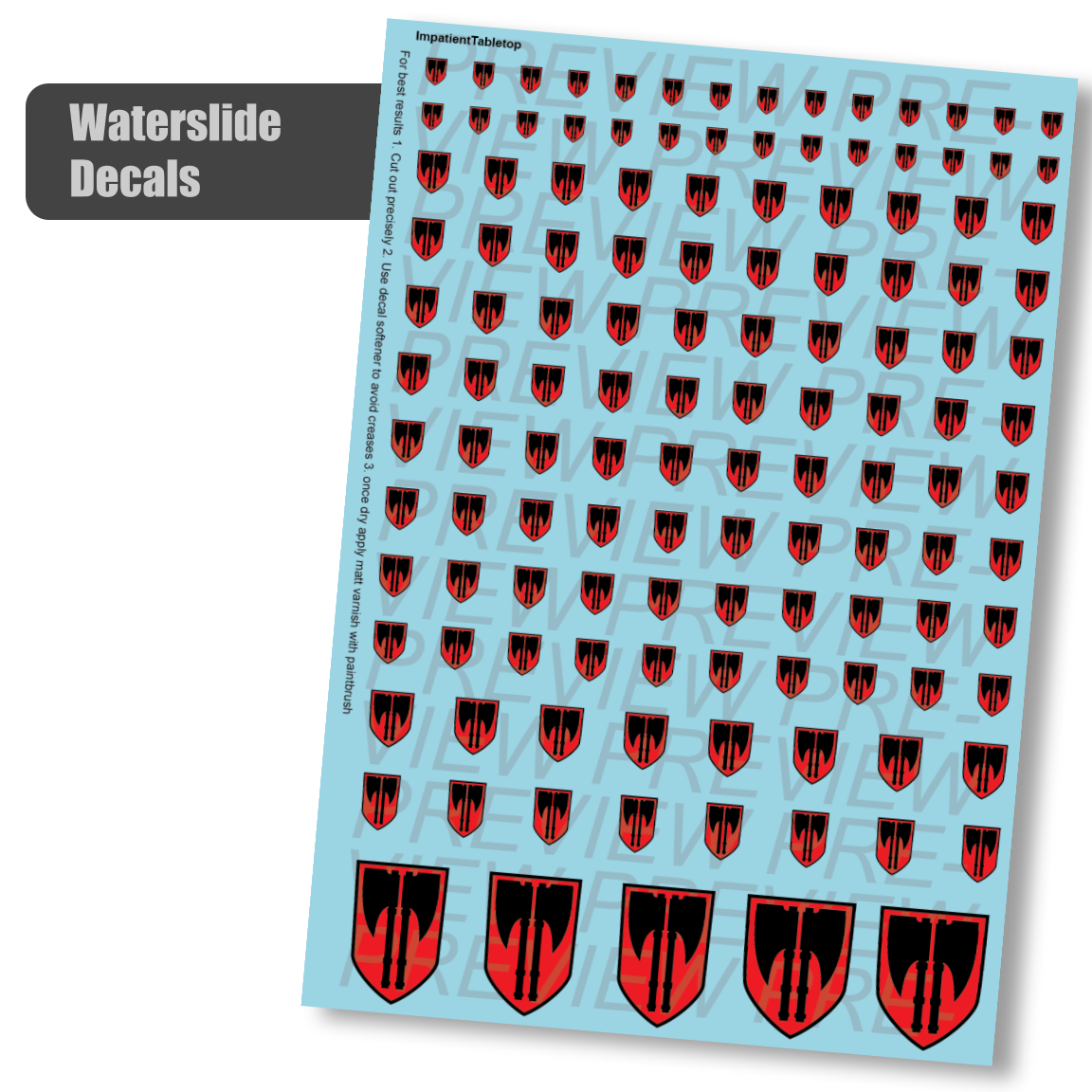 Elevate your miniature wargaming with waterslide decals—also known as transfers—designed specifically for modelers and perfect for miniature and wargaming models.
