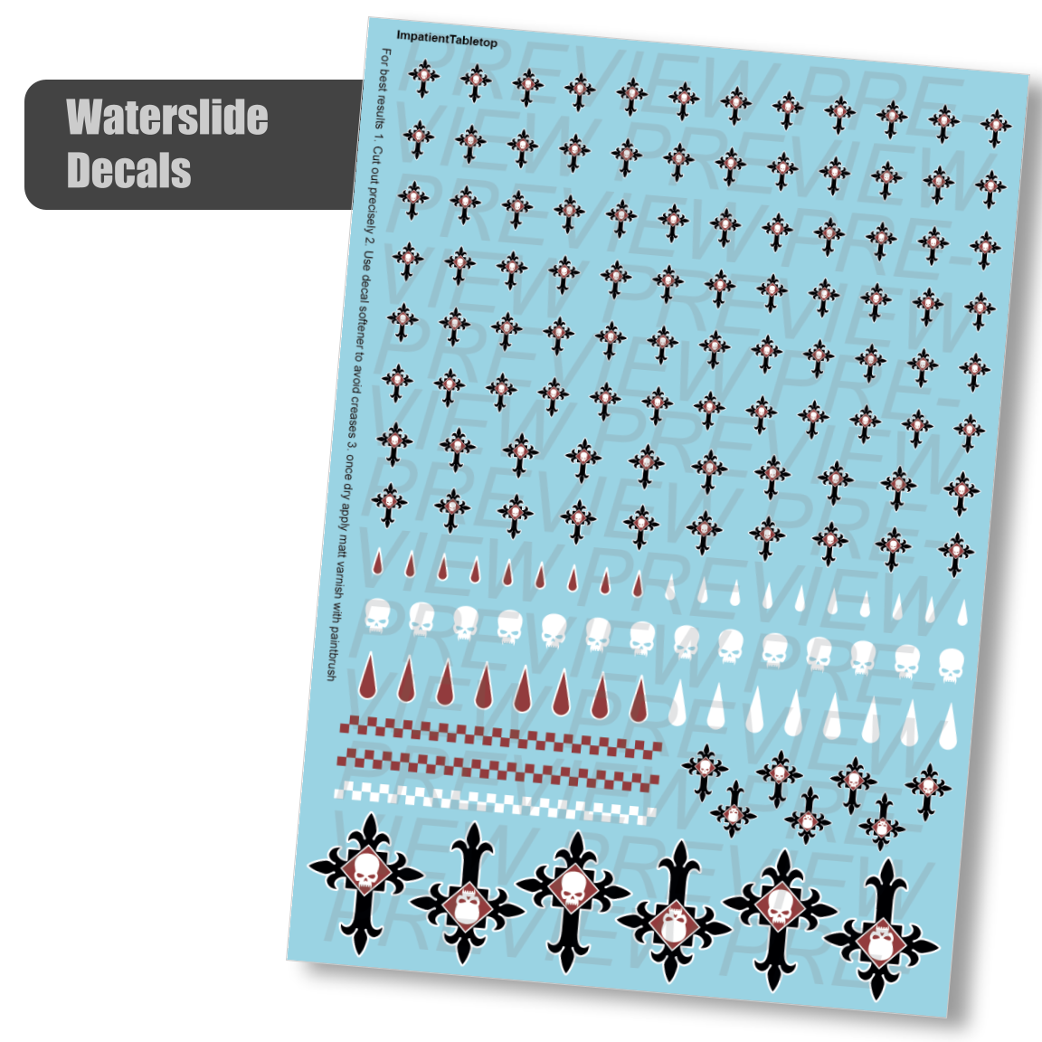 Elevate your miniature wargaming with waterslide decals—also known as transfers—designed specifically for modelers and perfect for miniature and wargaming models.